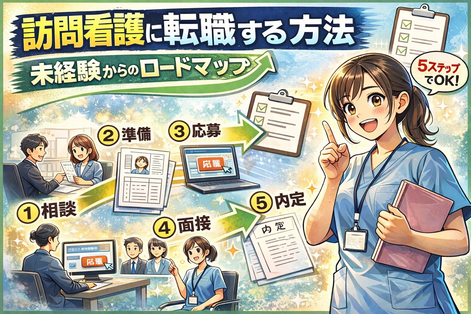 • 訪問看護に転職するための5つのステップをロードマップ形式で解説